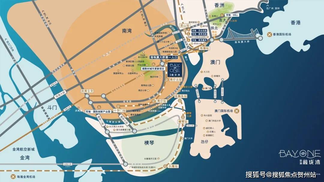 双瑞藏珑湾,坐落湾仔片区桥头堡,踞桥首优渥地段,以百米雄伟之势,扼守港珠澳大桥(延长线)桥头堡之位,一桥畅达港澳,纵享一小时湾区生活圈。