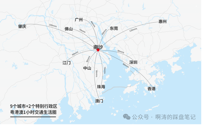 战略高度:南沙,占踞粤港澳大湾区C位,同时作为国家级自贸区、广州唯一城市副中心、粤港澳全面合作示范区。