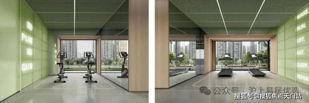 健身房 - 悦活天地:封闭管理,提供专业健身环境,空间内设跑步、拉伸、动感单车、休息、力量训练、水吧等功能区。
