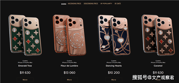 苹果:钻石定制版iPhone17 Pro系列发布:售价1.02万美元起。奢侈品牌Caviar推出“秘密之爱”定制版iPhone 17 Pro/Pro Max,共四款:“翡翠之树”“焦糖”“光之花”“舞动之心”,售价依次为11630、11630、13060、10200美元。